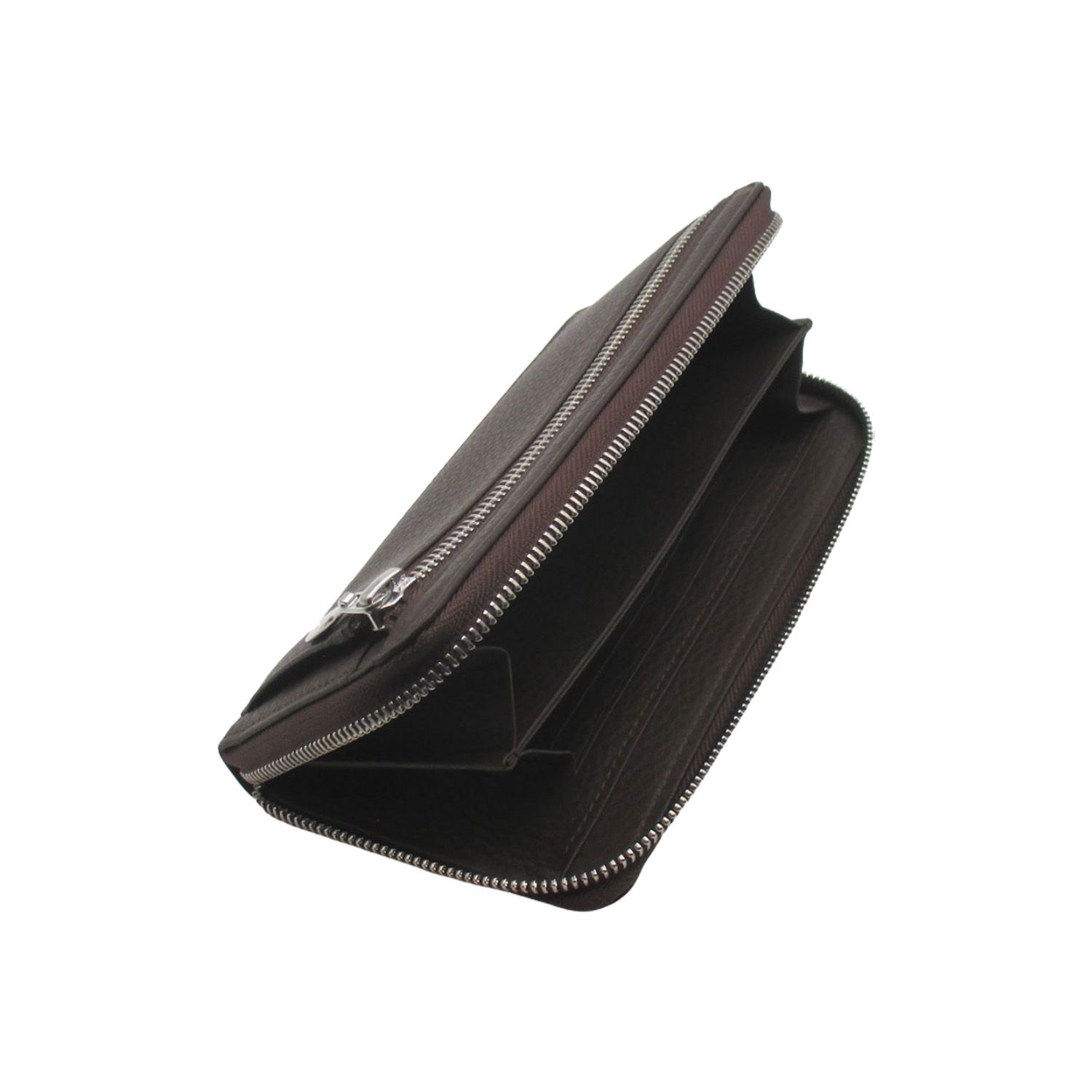Börse im Querformat mit einem umlaufenden Reißverschluss. Außen befindet sich ein Kleingeldfach