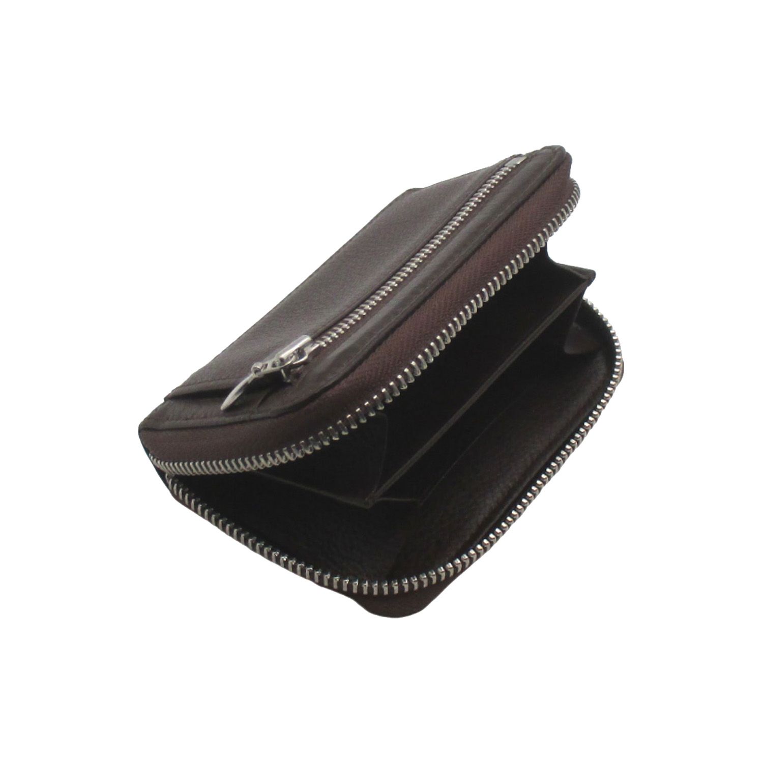 Kleine Reißverschlussbörse im Querformat mit einem umlaufenden Reißverschluss. Außen befindet sich ein Kleingeldfach