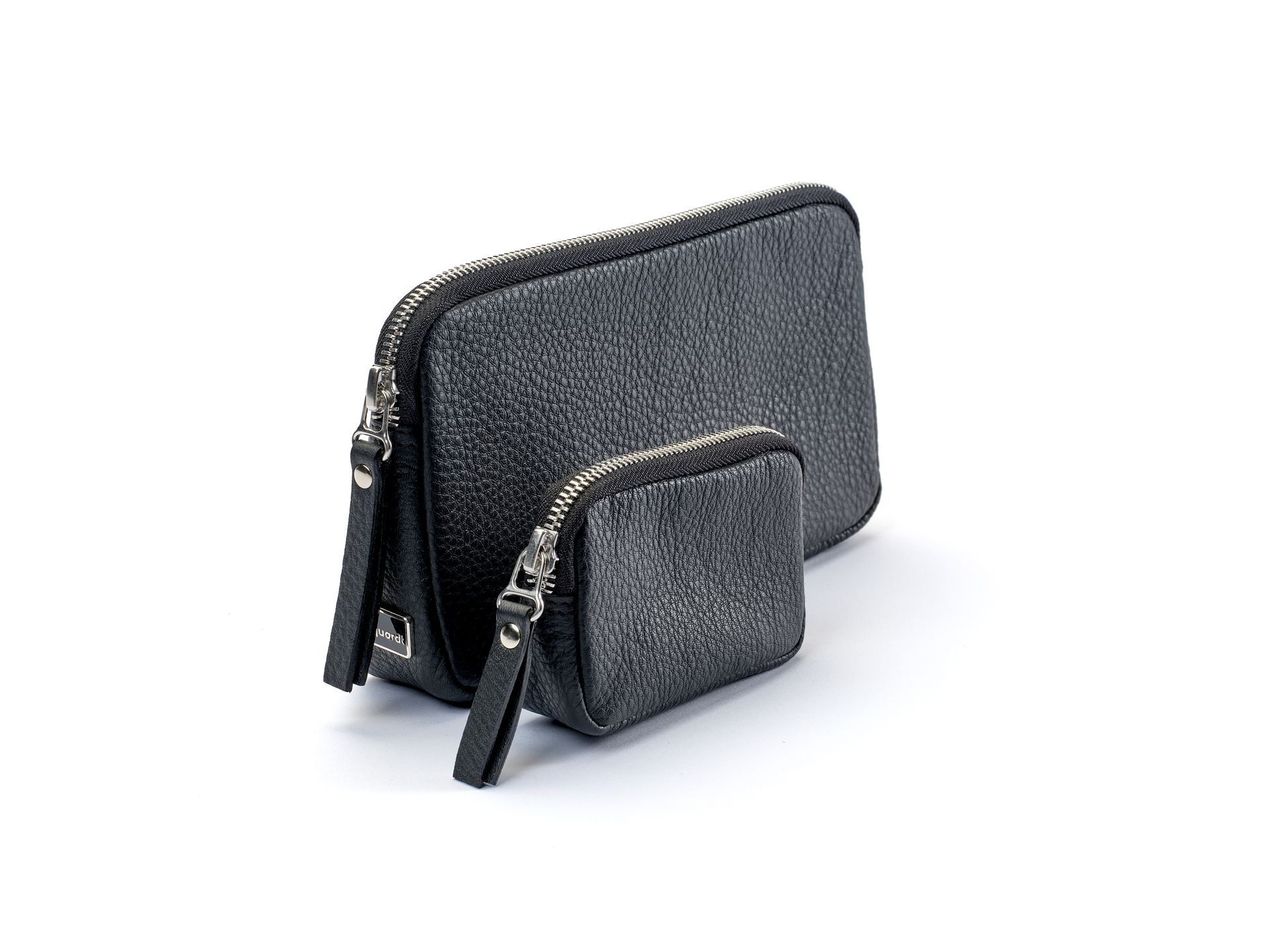 Concept Mini ist minimalistische 11 x 7cm groß und ersetzt somit von Größe und Umfang das klassische Portemonnaie. Im durch einen Reißverschluss geschützten Inneren, bietet die Concept Mini ein einziges geräumiges Fach. Je nach Anlass bietet sie sich als Portemonnaie oder auch als Schminktäschchen für ein kleines Touch up an.